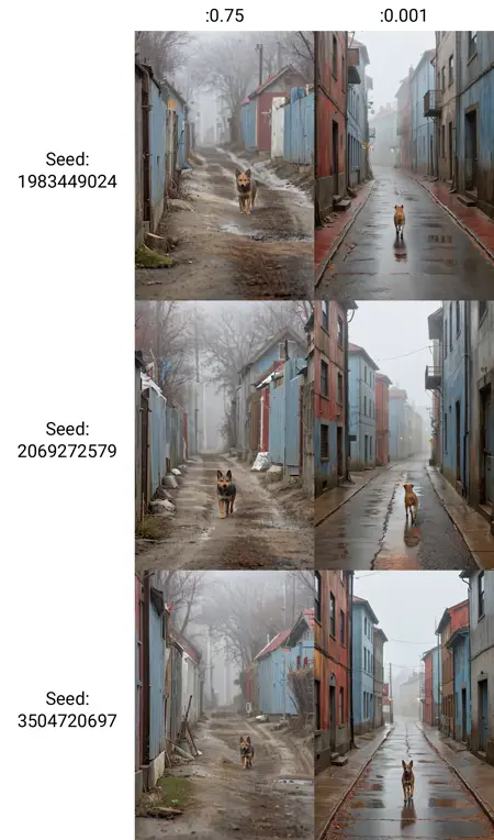 它增强了雾效,使雾密度梯度更加平滑,降低了对比度,增添了污浊湿润的地面,并将绿色调转向秋日色调,使画面更具忧郁感。此LoRa还可通过渲染美丽的夕阳天空来增强日落图片的氛围。