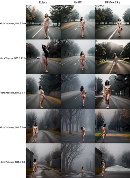 它增强了雾效,使雾密度梯度更加平滑,降低了对比度,增添了污浊湿润的地面,并将绿色调转向秋日色调,使画面更具忧郁感。此LoRa还可通过渲染美丽的夕阳天空来增强日落图片的氛围。