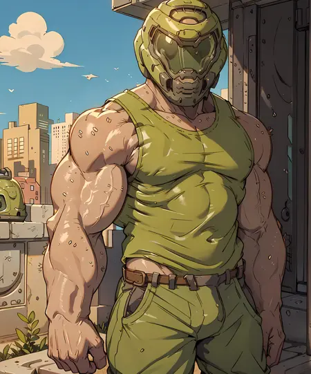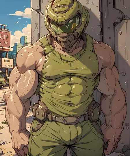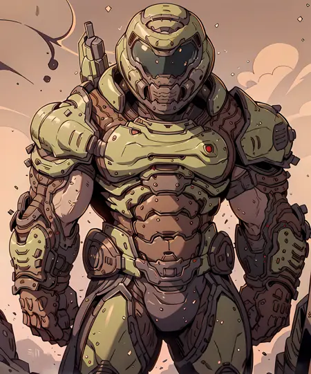 我制作了无头盔的毁灭战士(Doom Slayer)或毁灭战士(Doomguy)LoRA。我制作这个版本是因为有人向我请求这样的LoRA。所以……我尝试制作了它。享受吧 :D