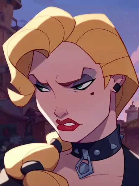 推荐提示词: "h_s, 1girl, blond hair, blue eyes, red lips, long ponytail hair, mole under eye"