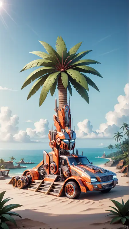 トリガーワード「TransformersStyle」とLoRAを組み合わせて有効化してください。