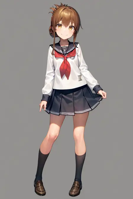 基础提示词:1girl, inazuma \(kancolle\), brown hair, folded ponytail, long hair, brown eyes