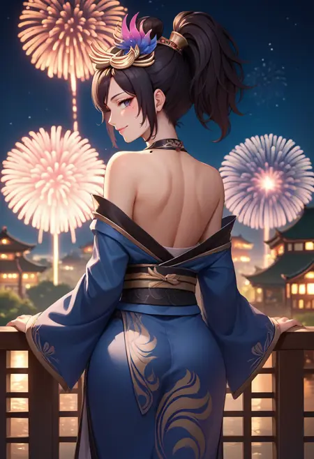 Trigger + Appearance: zhenji, mole under eye, ponytail, hair ornament