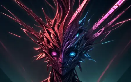 「horror, organic, metallic, nature, roots, strings, plates, strips, floating, landscape」などの他のタグは、追加のプロンプトヒントとしてうまく機能しますが、一度にすべてを組み合わせないでください。