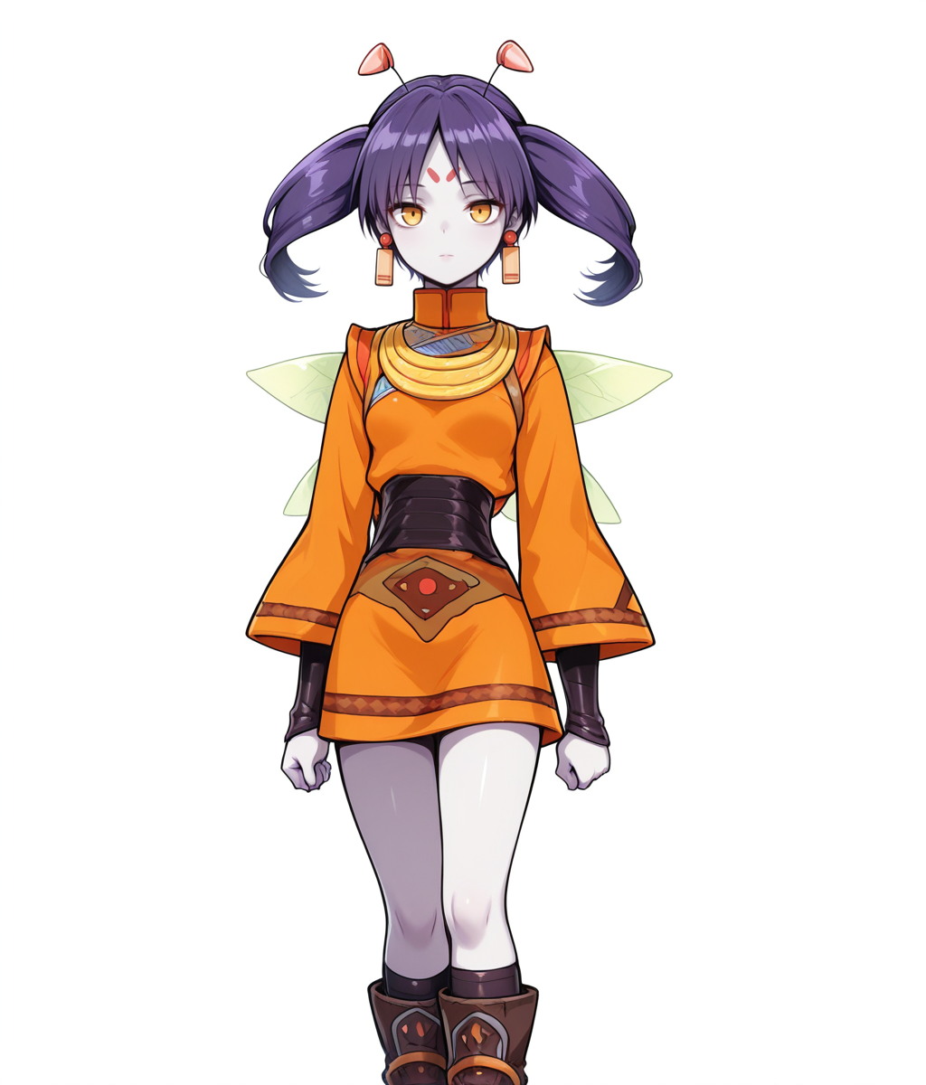 SD 1.5:该Lora在描绘她时表现相当出色,当然翅膀部分有些难以精确还原。翅膀本应是昆虫般的形态,但如果看起来像普通的天使翅膀,可以加入提示词“绿色翅膀”和“半透明翅膀”。一般来说,对我而言,强度在0.6至0.9之间效果最佳。