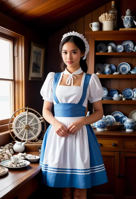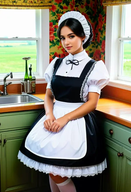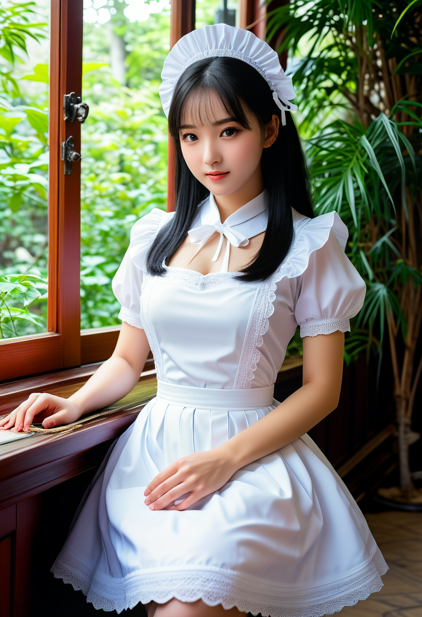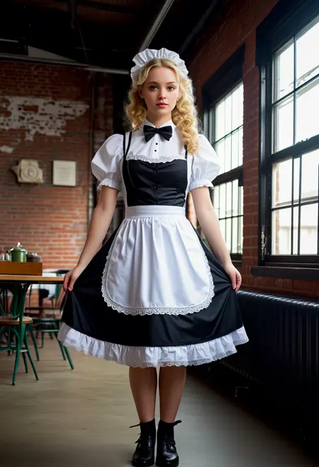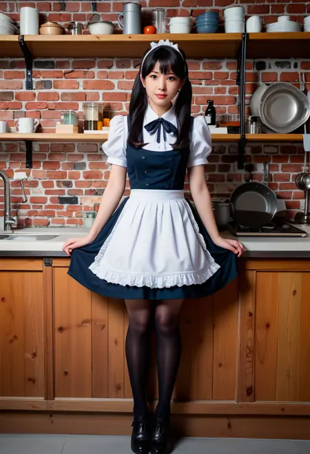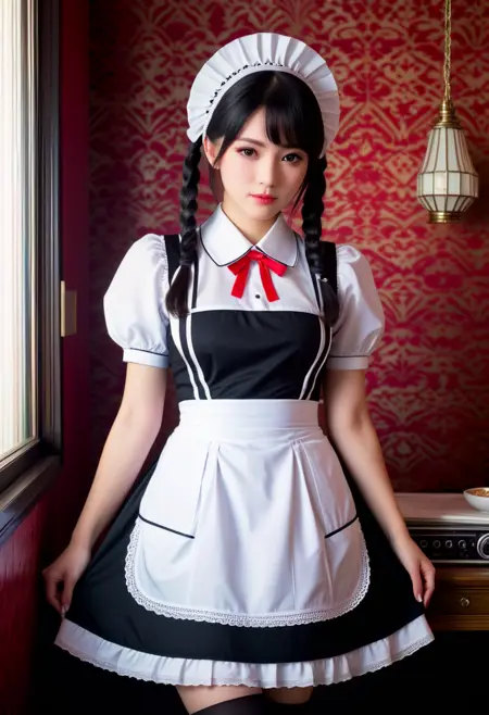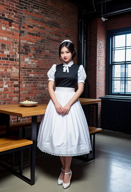 __cf-maid/prompt-full__ : 메이드 복장과 소녀, 장소를 함께 프롬프트
