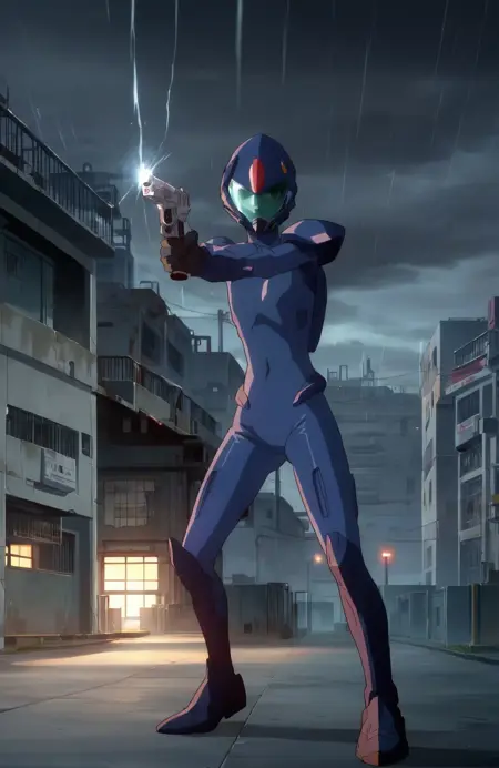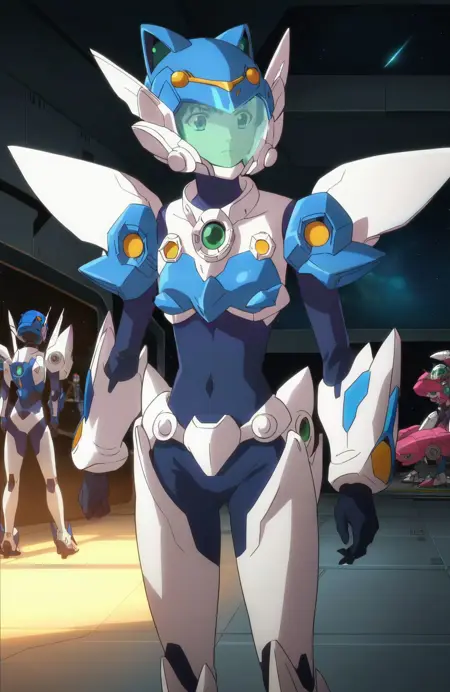 プロンプト: ep1battlesuit, aoifutaba,1girl, bodysuit, helmet, small breast