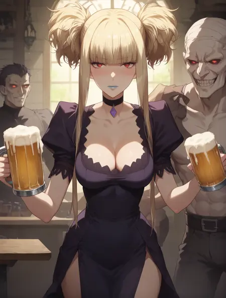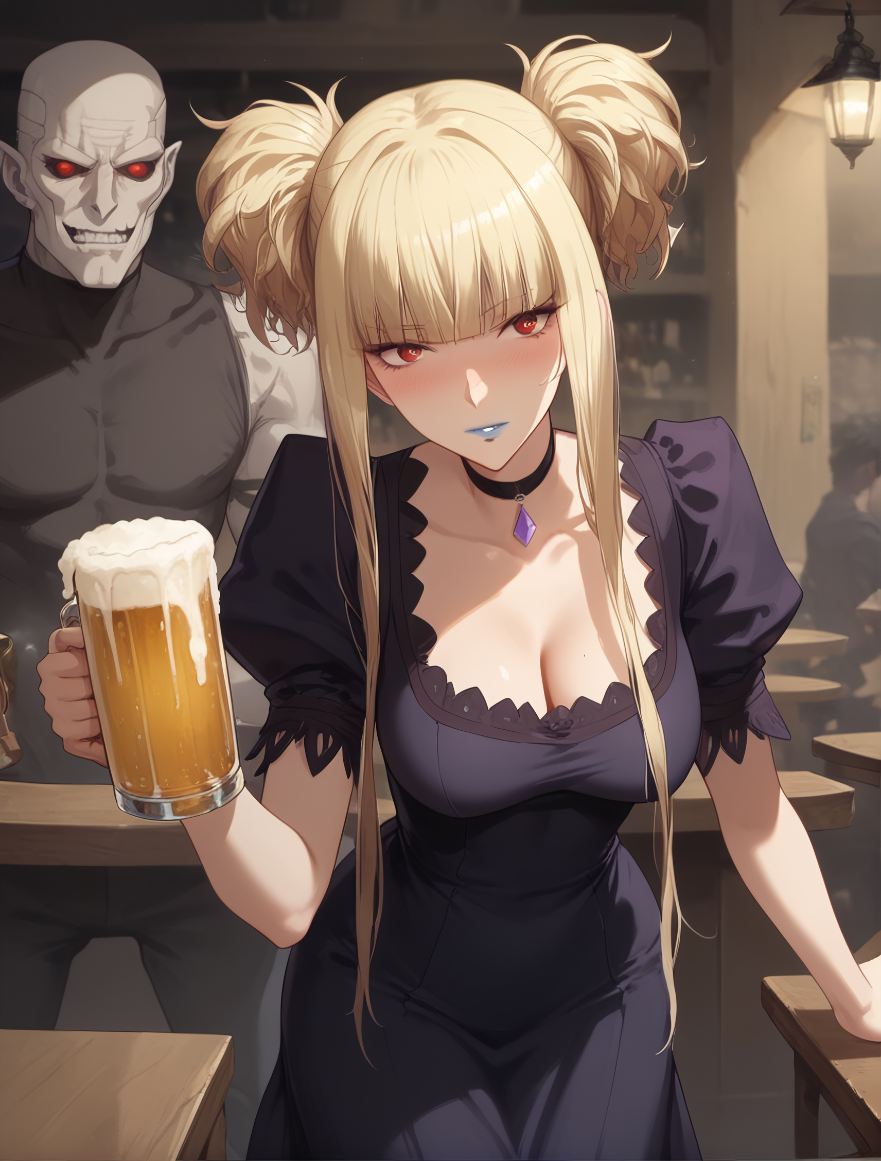 以下のように始めることをお勧めします: score_9, score_8_up, score_7_up, ultra detailed, 1 girl,lora:Kongou:0.8,kongou_aoki, blonde hair, red eyes, blue lips, dress...