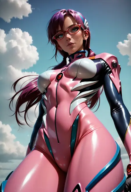 触发词:“mari-pink, red-framed eyewear, hairband, pink plugsuit,”