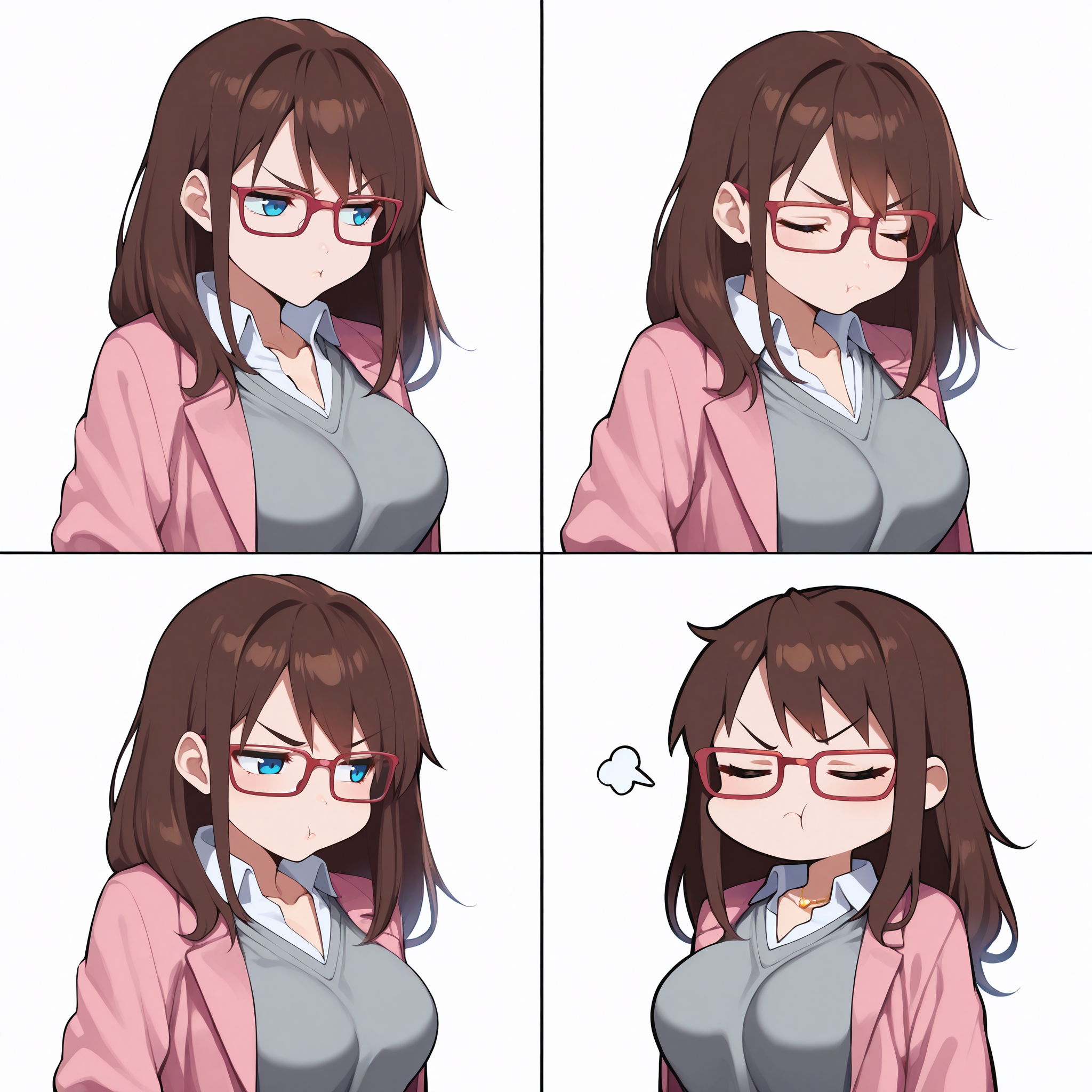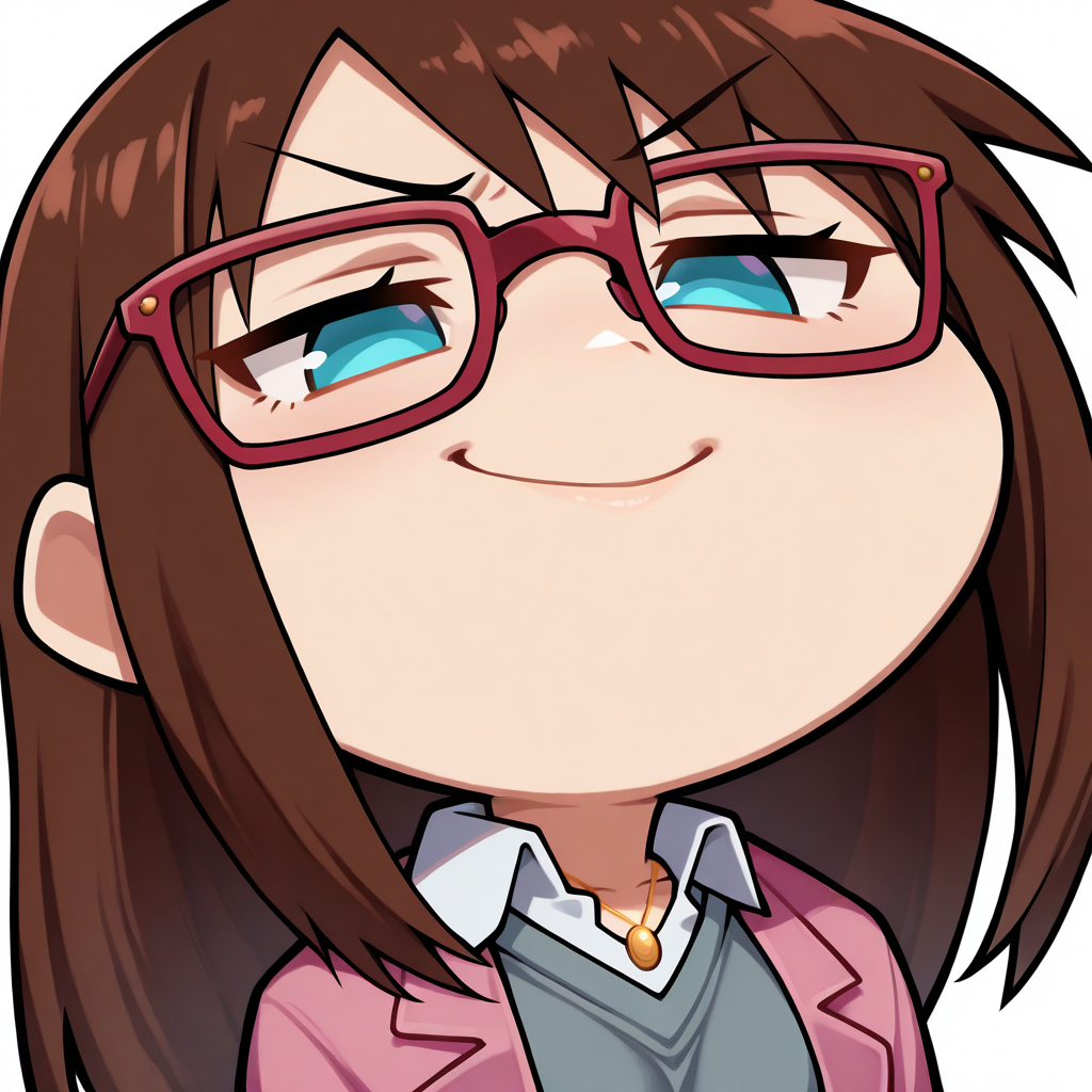 트리거 단어: "mari-pink, red-framed eyewear, hairband, pink plugsuit,"