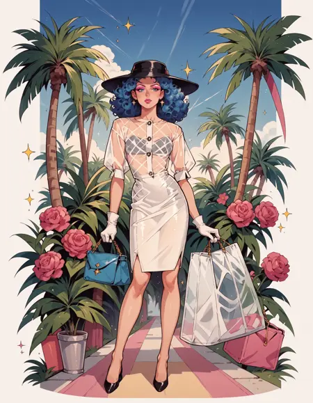 이 LoRA는 1980년대 Jem 인형의 박스 아트와 유사한 스타일로 다양한 외관을 생성합니다. Sharon Knettell의 작품에서 영감을 받았습니다.