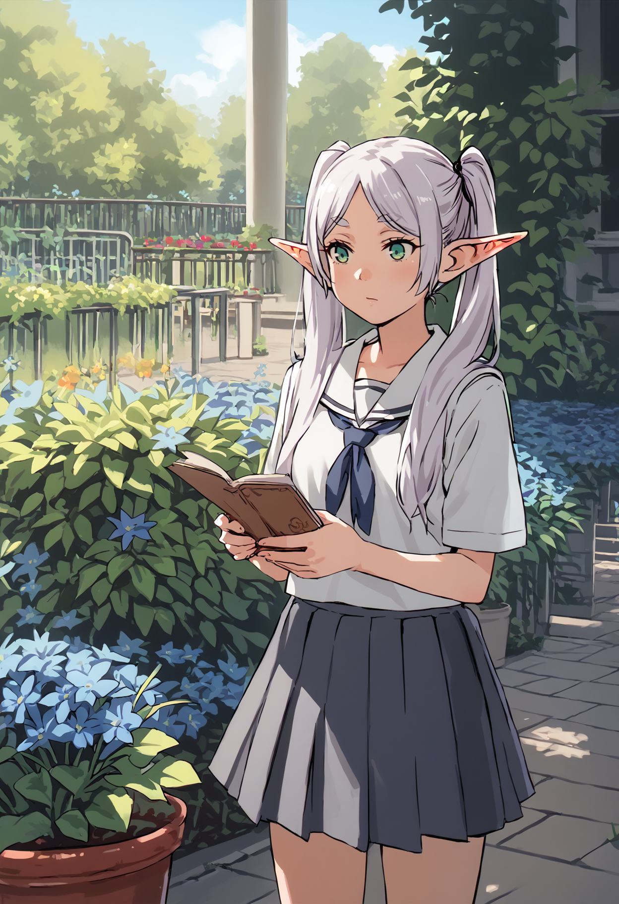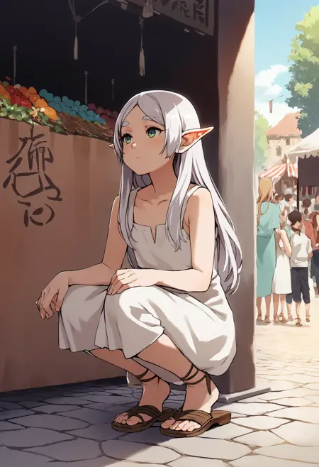 『蘇生のフリーレン』のフリーレン。Pony SDXL で学習済み。最適な重み:0.8–1.0