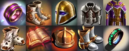 我推荐从 cfg 7 和 20 步 开始,使用无触发词的提示词作为起点。先找到一个你满意的物体和种子(seed),该种子能准确反映你想要生成的对象,之后使用该种子配合编辑后的触发词,例如 [rpgicondiff:4],并进行反复实验。
