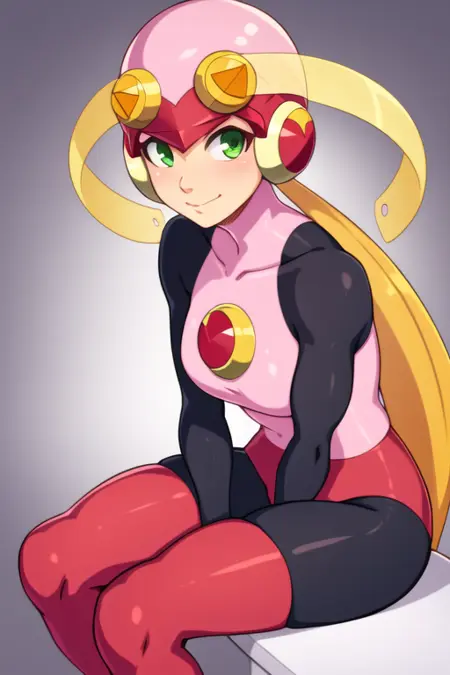 blonde hair, long hair, leotard, helmet, leotard, pink bodysuit, bodysuit