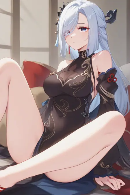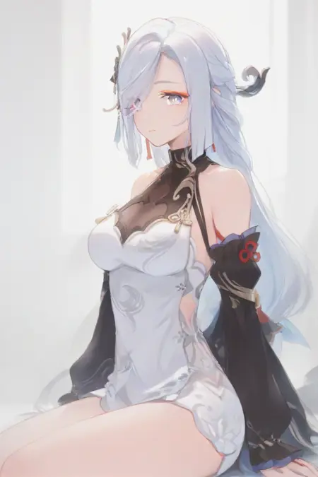 原神申鹤“冷花幽露”服装LoRA,虽然有种重复造轮子的感觉,但我还是做了。原本想做成可脱卸的白色内衬,但腰部的白色部分无论如何都脱不掉,no underwear只能去掉安全裤。