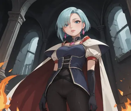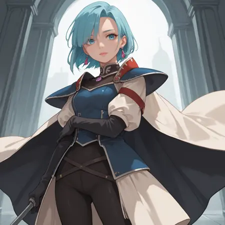 SD 1.5: Works well from strength 0.5 to 1, but I got the best results with strengths 0.7 and 0.8 depending on the angle I wanted the character be viewed from. Dataset does contain some imagery of her holding a rapier, but it's kind of iffy to generate. Also her hairstyle might cover the wrong eye sometimes. :/