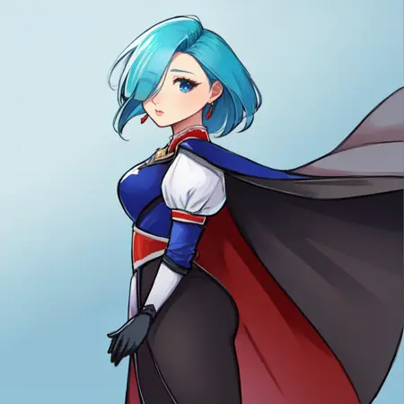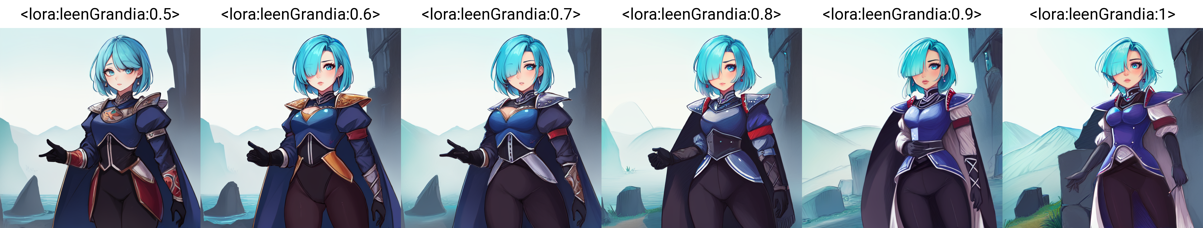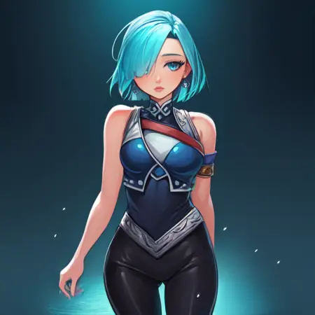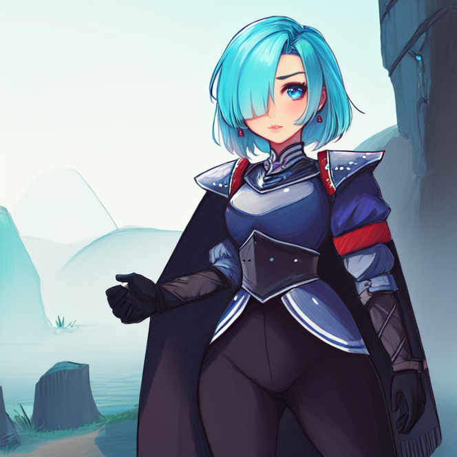 SD 1.5: Works well from strength 0.5 to 1, but I got the best results with strengths 0.7 and 0.8 depending on the angle I wanted the character be viewed from. Dataset does contain some imagery of her holding a rapier, but it's kind of iffy to generate. Also her hairstyle might cover the wrong eye sometimes. :/