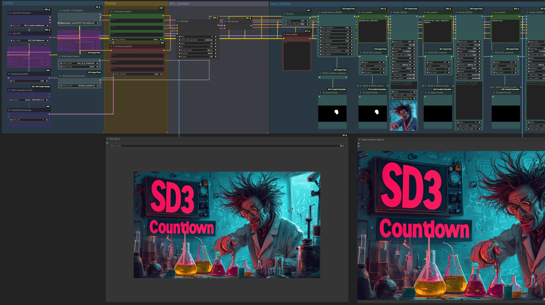 Stable Diffusion 3 with Face_Detailer (SD3) [ComfyUi]