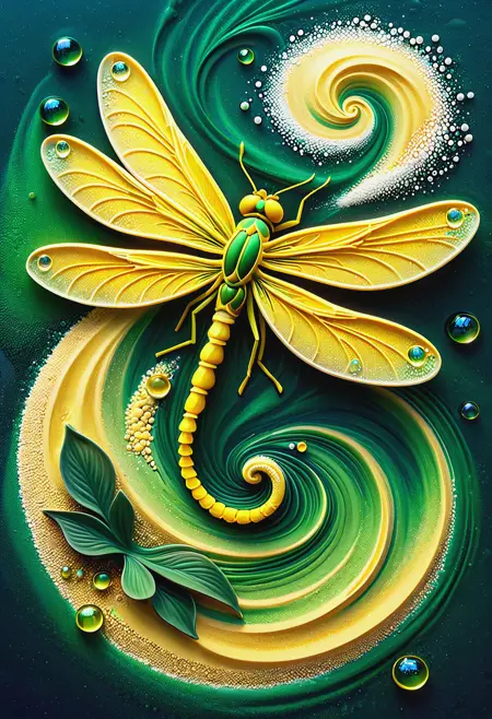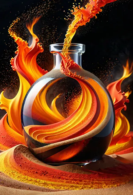 渦巻き模様のさまざまな色の砂でトレーニングされたLoRA。彫刻、風景、衣装、そしてユニークなイメージに最適です。推奨される強度は.2-.8。トリガー語はsandswirlです。