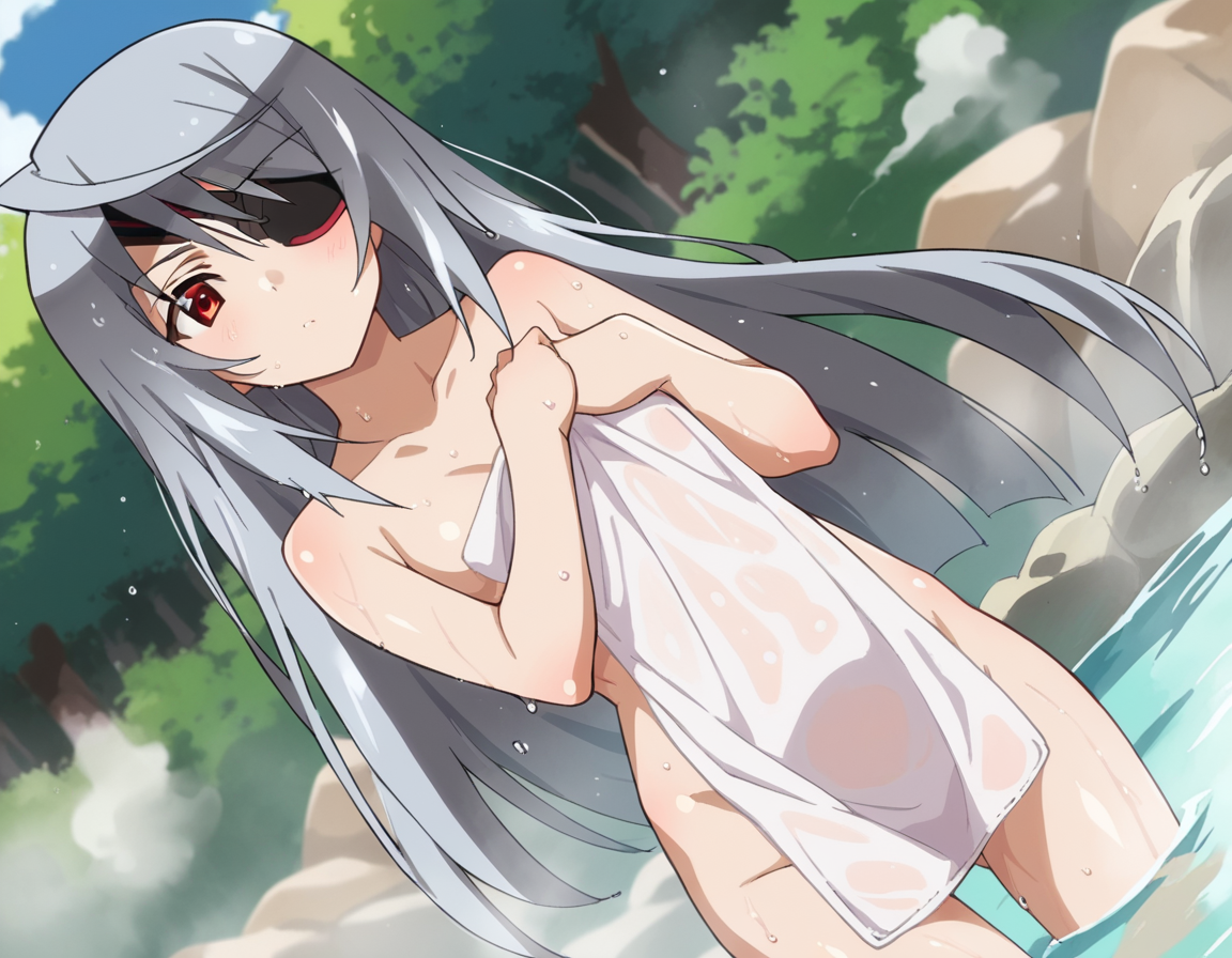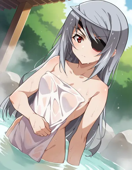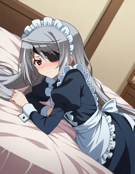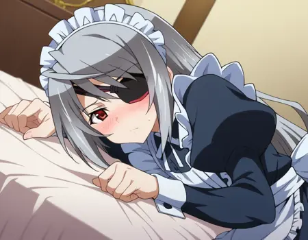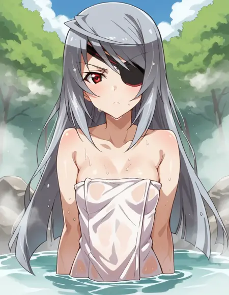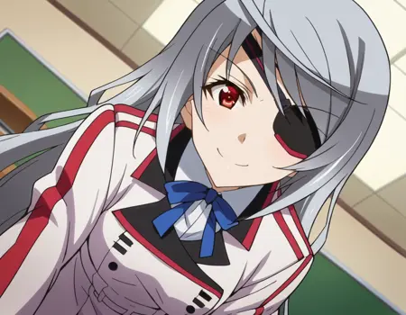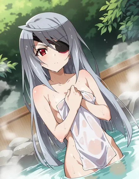 laura bodewig, 긴 머리, 빨간 눈, 회색 머리, 안대,