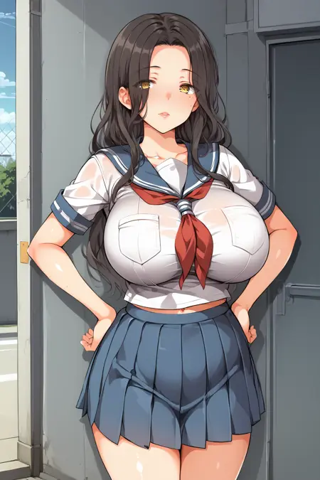 黄色い目、巨大な胸、長い髪、成熟した女性、広い hip、(目の下のほくろ:0.8)