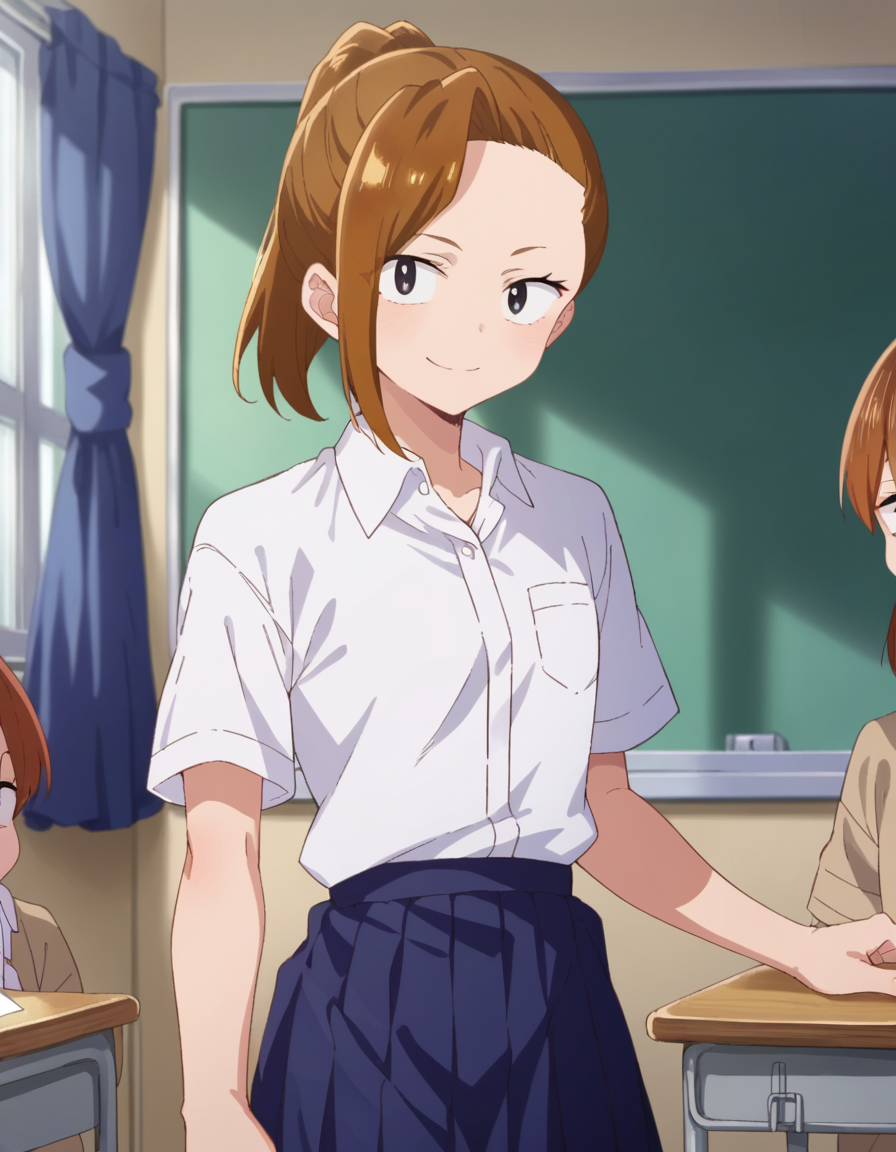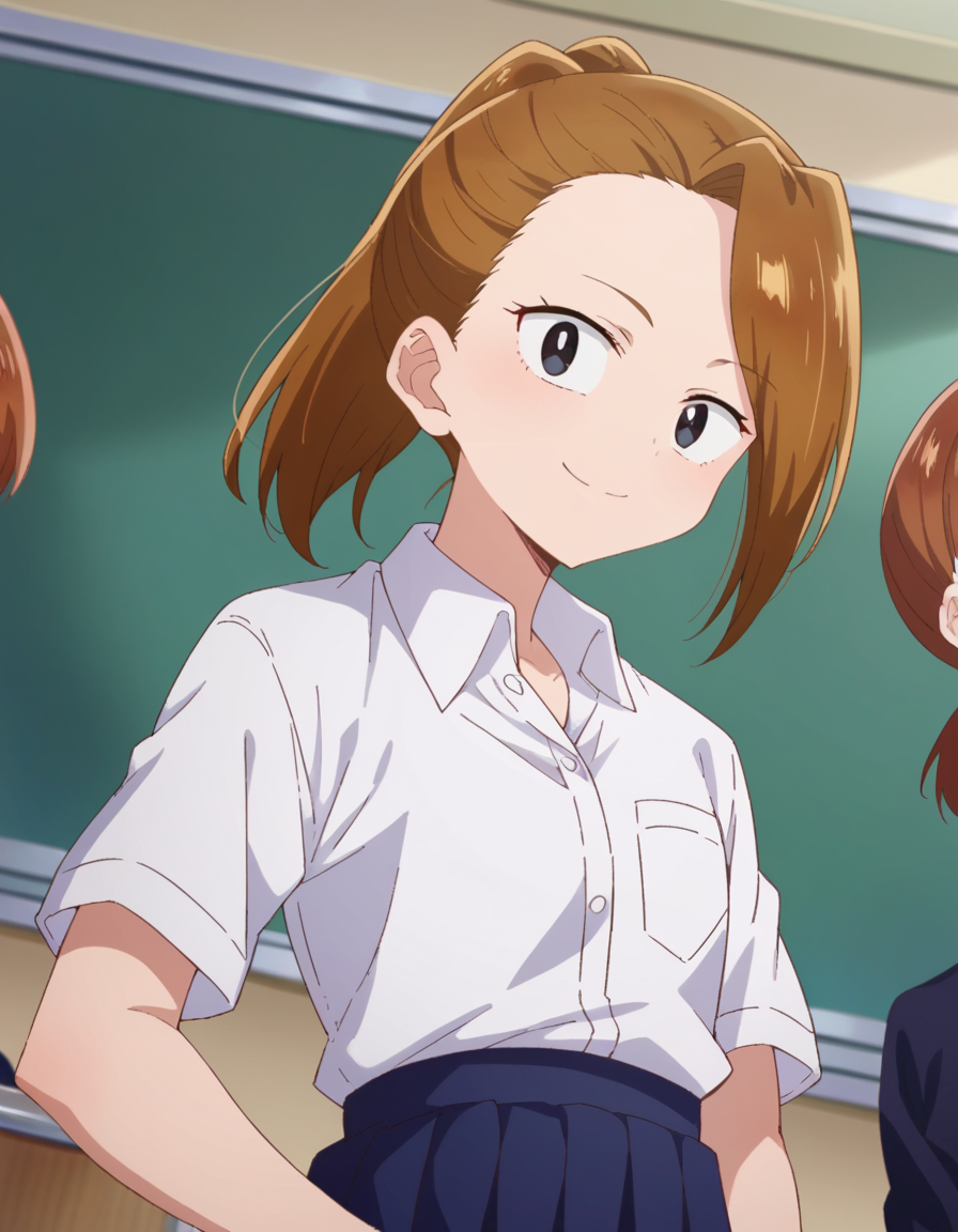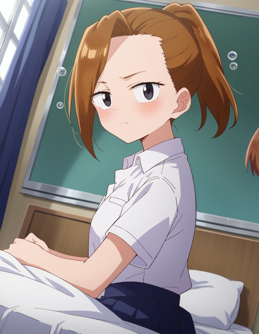 serina yoshida, brown hair, ponytail, black eyes,