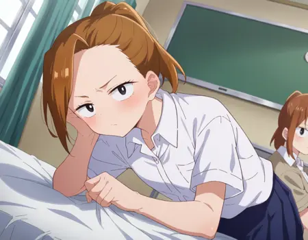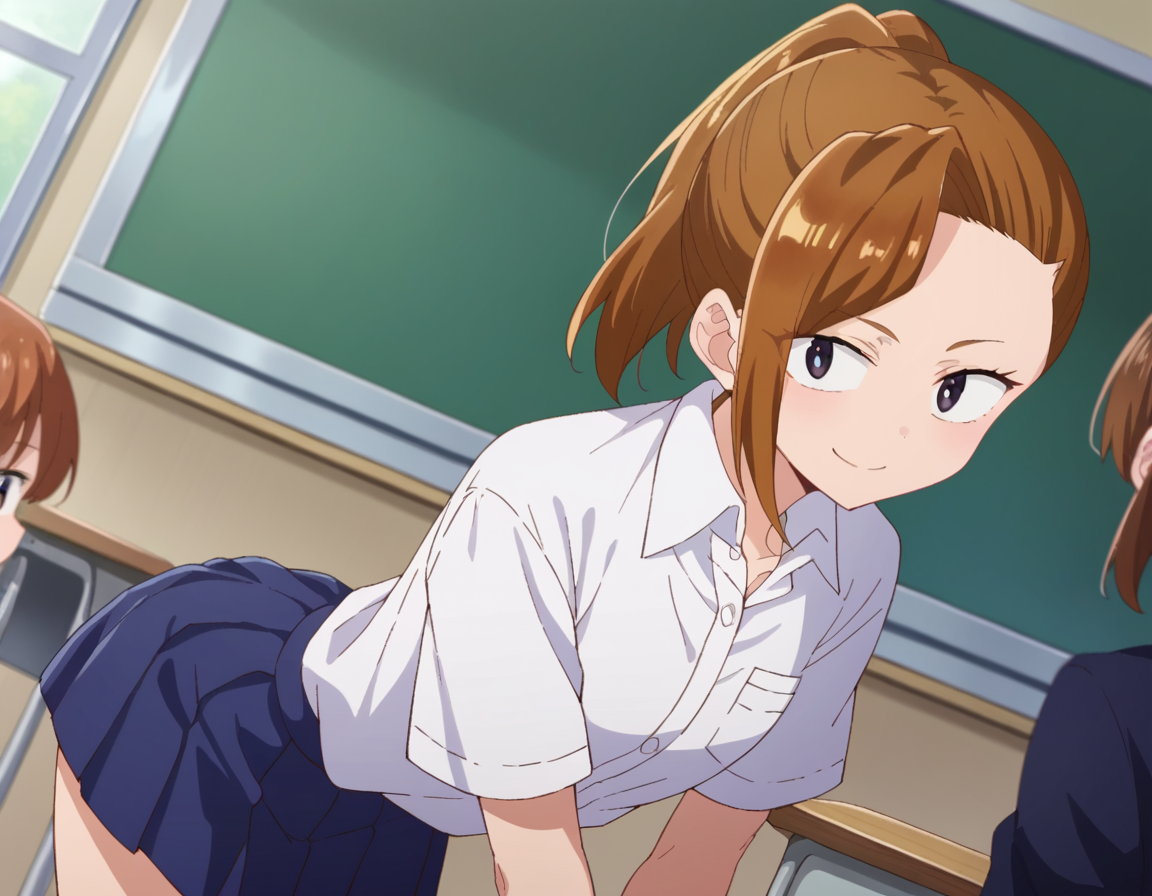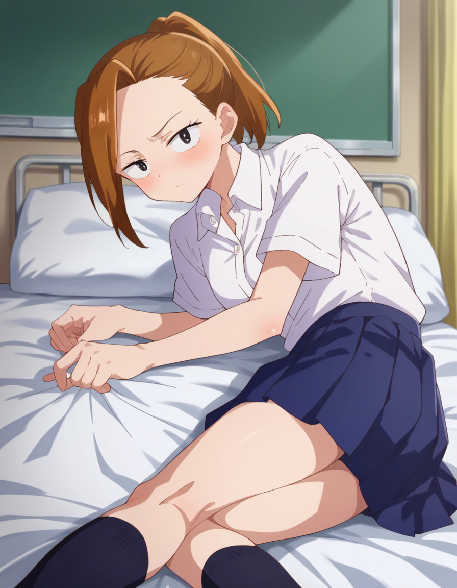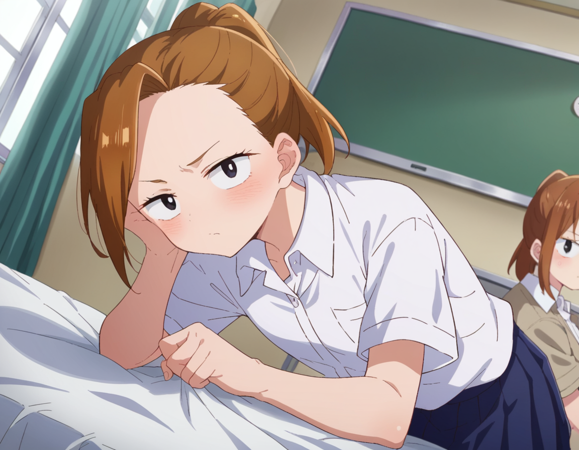 serina yoshida, brown hair, ponytail, black eyes,