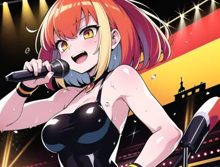 middle hair,multicolored hair, orange hair,red hair