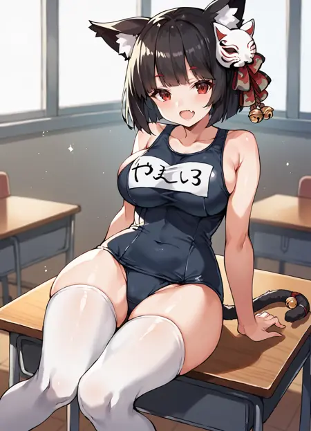 yamashiro \(azur lane\), yama swim, 학교 수영복, 흰색 허벅지 양말, 팔 벌어짐