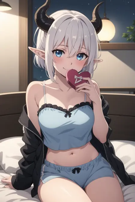 트리거 단어: Mialygosa lora:Mialygosa-10:1, 단발, 파란 눈, 눈 사이의 머리카락, 언더핀, 하얀 머리카락, 뿔, 뾰족한 귀, 악마 뿔, 더블 플랫테일,
