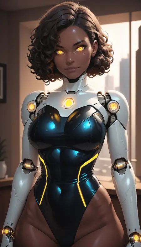 触发词: cyb0rg, 1girl, solo, 发光的眼睛, 机器人, 赛博格, 机械臂, 紧身衣, 机器人关节, 山脉, 城堡, 太空站, 城市, 屋顶, 客厅, 厨房, 购物中心, 酒馆, 浴室, 客厅, 沙漠, 瀑布, 海滩, 健身房, 森林, 街机厅, 办公室, 高速公路