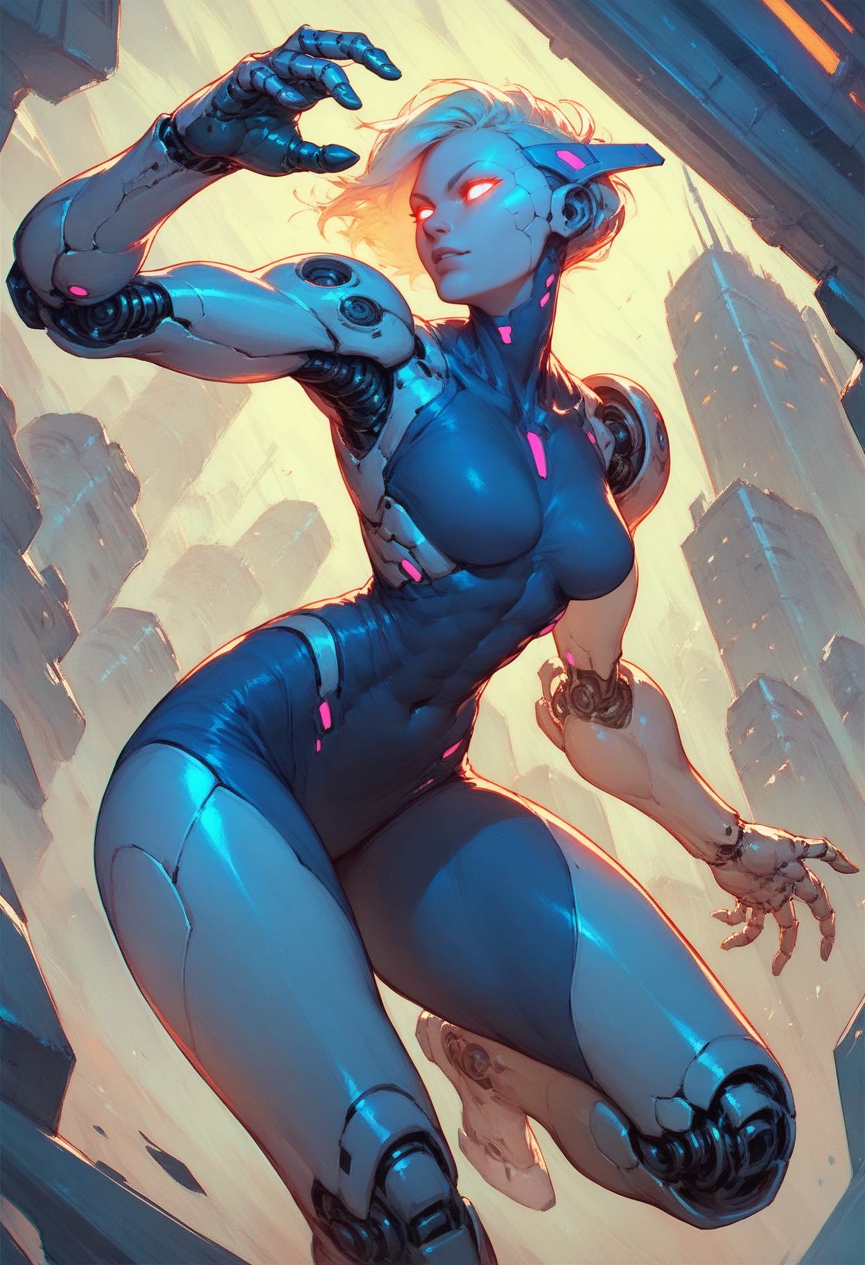 트리거 단어: cyb0rg, 1girl, solo, 빛나는 눈, 안드로이드, 사이보그, 기계식 팔, 레오타드, 로봇 관절, 산, 성, 우주 정거장, 도시, 옥상, 거실, 주방, 쇼핑몰, 주점, 화장실, 사막, 폭포, 해변, 체육관, 숲, 아케이드, 사무실, 고속도로
