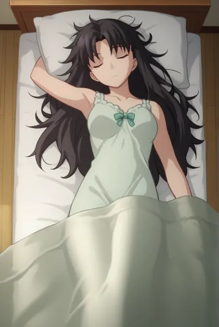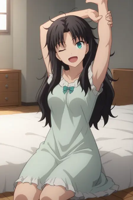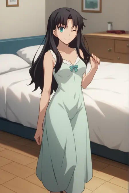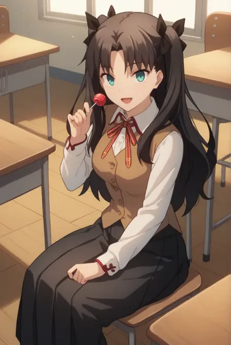 <lora:TohsakaRinXL-v1-04:0.7>, ChopioTohsakaRin, 검은 머리, 긴 머리, 양쪽 올리는 스타일, 중간 갈라진 앞머리, 헤어 리본, 청록색 눈, 보는 시선,