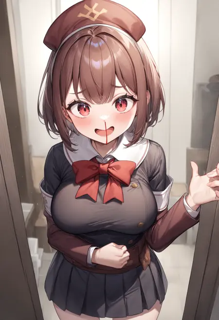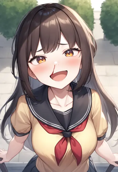 This is LoRA with bleeding in the nose and blood dripping from the nostrils.