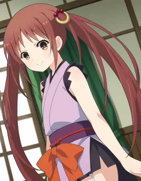 komurasaki,长发,棕色头发,双马尾,棕色眼睛,非常长的头发,