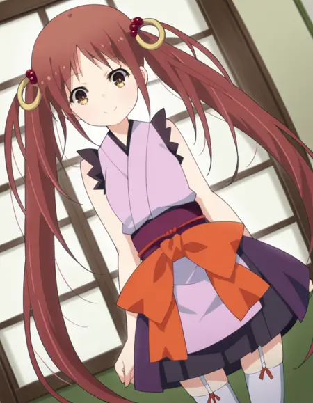 komurasaki, long hair, brown hair, twintails, brown eyes, very long hair,