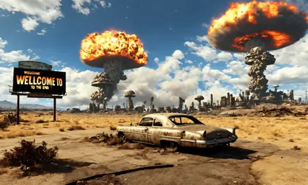 推荐使用的提示词:废土、新维加斯、废弃城市、华盛顿、复古未来主义汽车