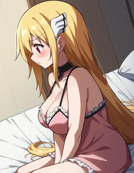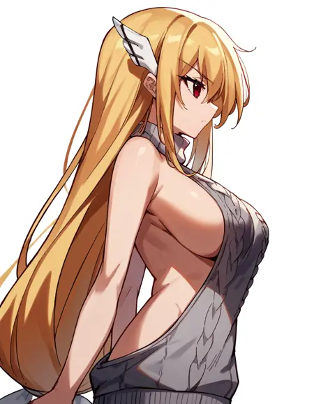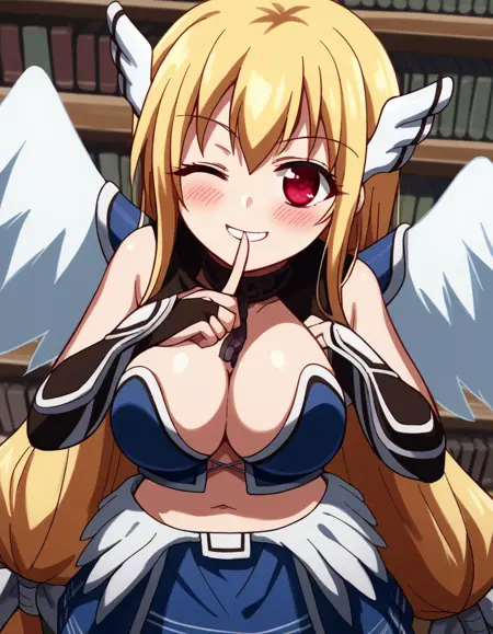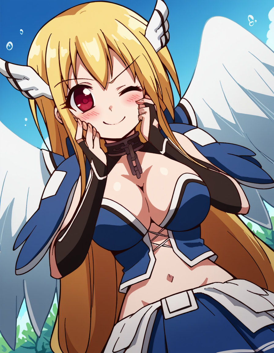 astraea, angel wings, blonde hair, long hair, red eyes, wings,