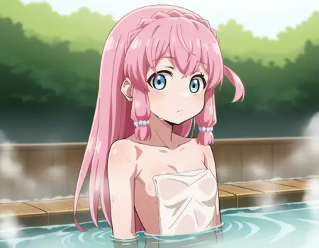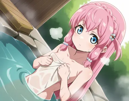 nei ookawamura, long hair, blue eyes, hair ornament, pink hair, braid,