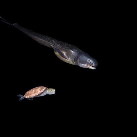 It has been trained on 1000 high quality blackwater images of pelagic sea life (the tiny sea animals which rise to the surface of the ocean at night) and deep sea life.