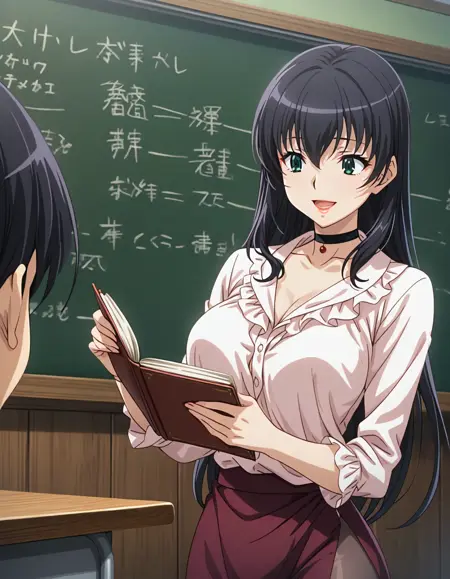 推荐提示词(服装2):黑色项圈, 白色衬衣, 长裙, 裙子, 侧开叉, 连裤袜, 高跟鞋,
