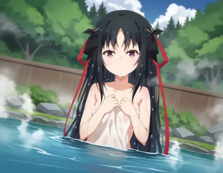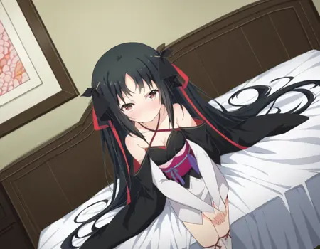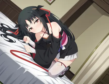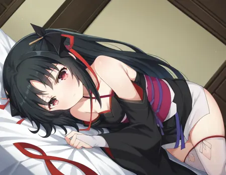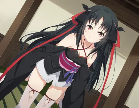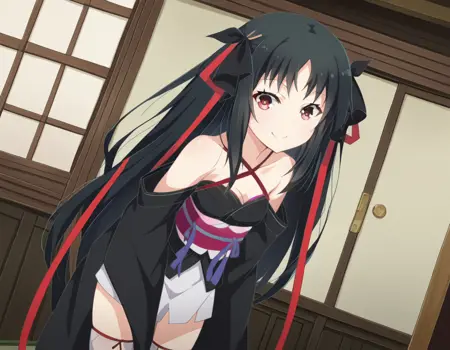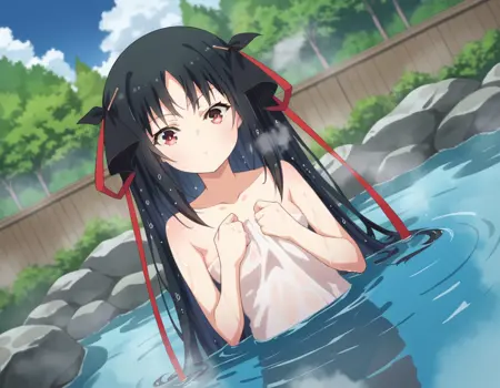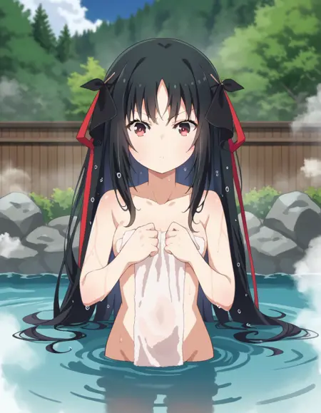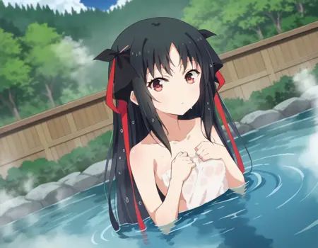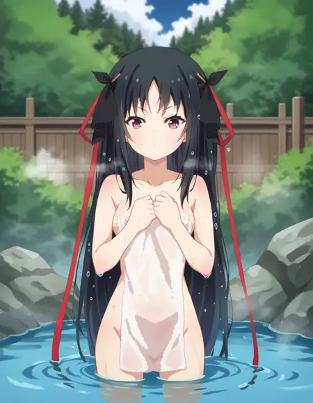 yaya, 긴 머리, 검은 머리, 빨간 눈, 매우 긴 머리, 머리리본, 리본,