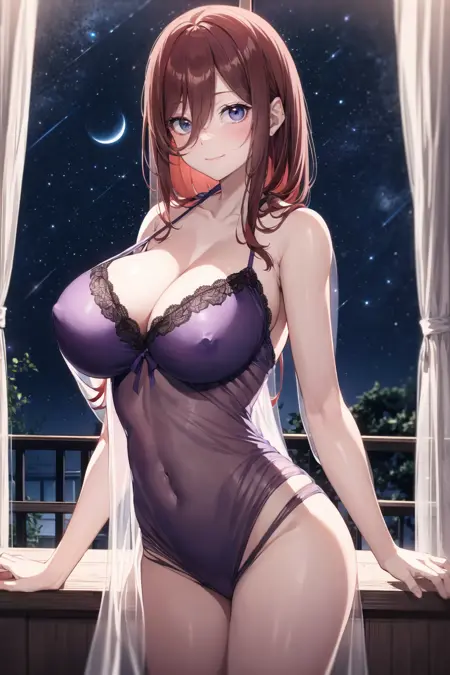 仲野みく、青い目、目の間の髪、茶色の髪(または赤髪、または両方、モデルとご希望によります)