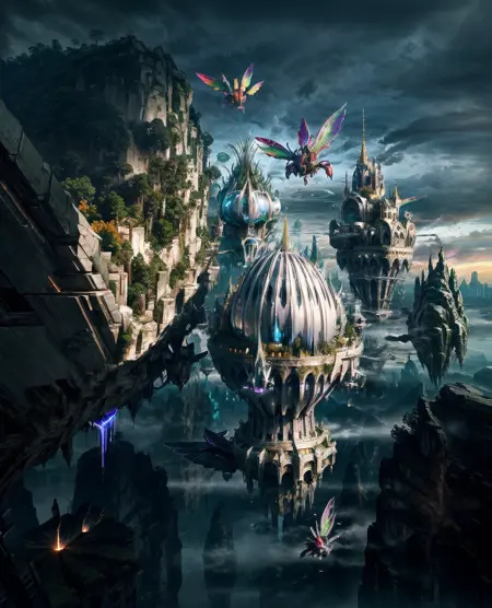 lora:quiron\_LegendaryLandscapes\_v1\_Lora:0.87 LegLandscapesQuiron, legendary landscapes by quiron, landscapesquiron, surreal, particles, chromatic aberration, glowing, shiny, fantasy , scenery, landscape, nature, , sky , intricate artwork masterpiece, impressive, stunning, Award winning illustration , Mirror Caves,