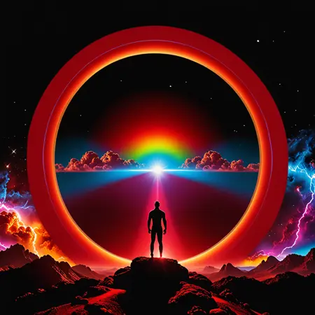 a black hole with a black hole in the center, cd cover artwork, blue and orange lighting, apophysis, dribbble, eye fire, piercings resembling plasma jets, in salvia divinorum, credit nasa, by Otakar Sedloň, evil eye, an ai generated image, maw art, computer art, eruption, art »