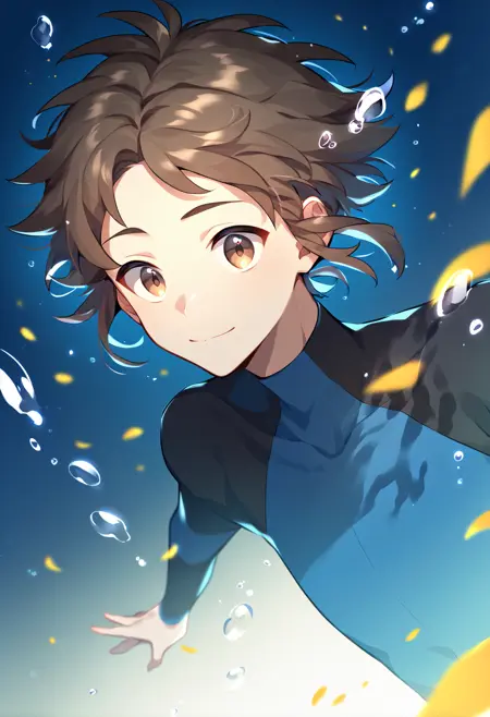 Swim outfit: nate, brown eyes, brown hair, bodysuit, multicolored bodysuit