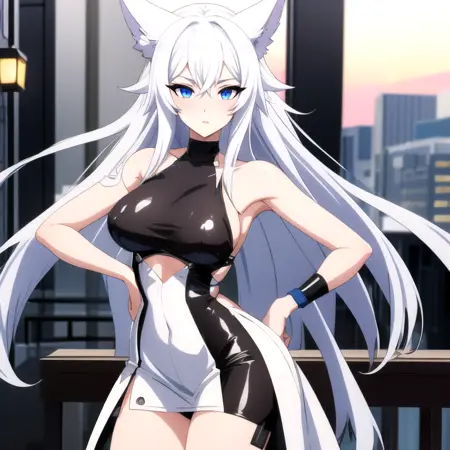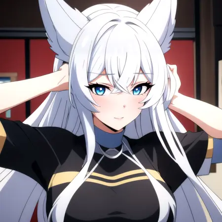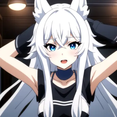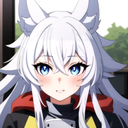 huxenri-su, wolf girl, beast ears, wolf ears, silver hair, long hair, blue eyes