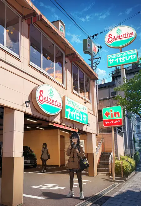 これは、日本で大人気のイタリア料理系ファミリーレストランチェーンの外観っぽい風景をもしかすると描くことができるかもしれないLoRAです。