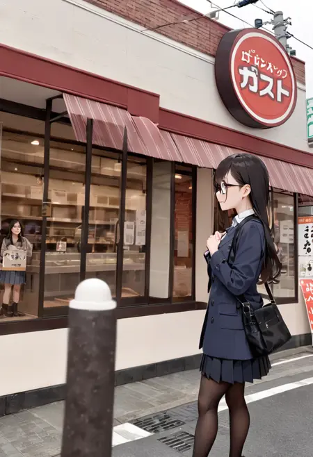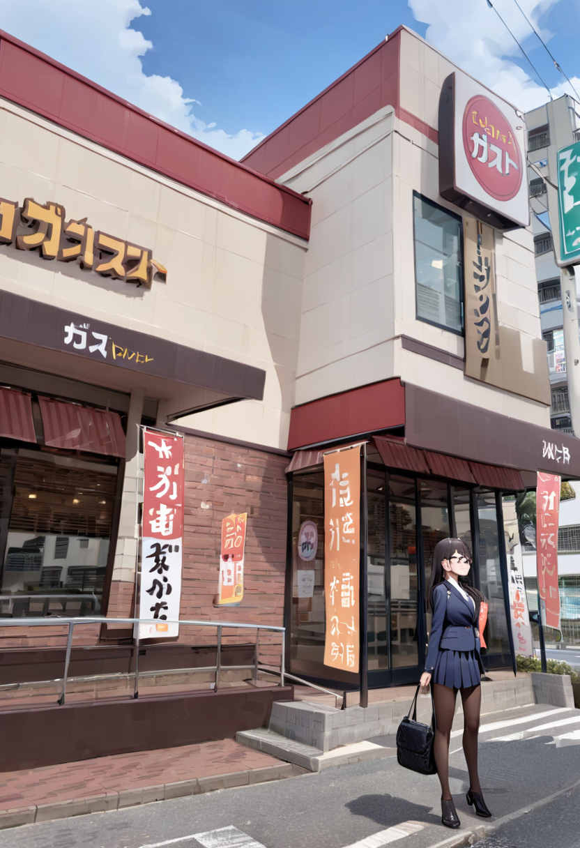 This is a LoRA that could possibly depict a landscape that looks like the exterior of a popular Japanese family restaurant chain. これは日本のポピュラーなファミリーレストランチェーン店の外観っぽい風景をもしかすると描くことができるかもしれないLoRAです。