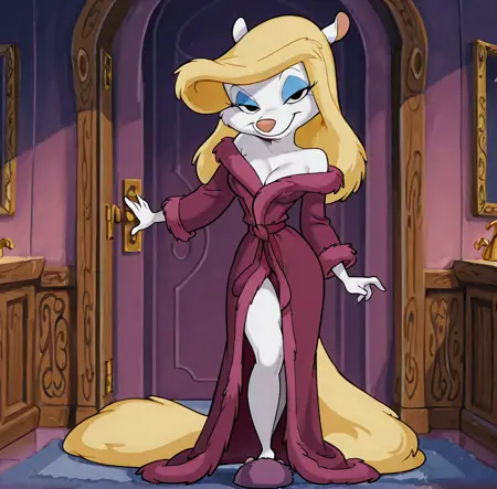 标签:米诺娃·明克、金发、尾巴、毛茸茸的女性、蓝色眼影、白色毛发、身体毛发,